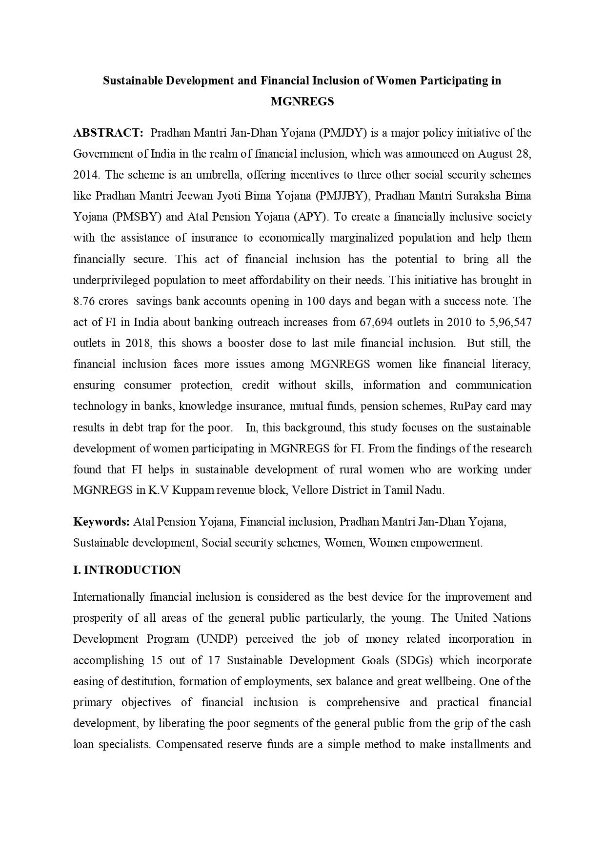 Sustainable Development and Financial Inclusion of Women Participating in MGNREGS