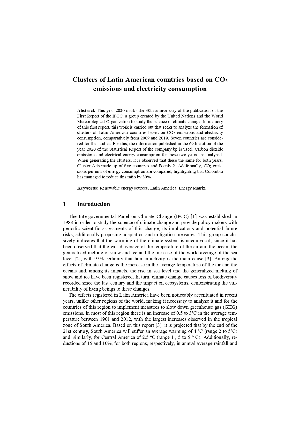 Clusters of Latin American countries based on CO 2 emissions and electricity consumption